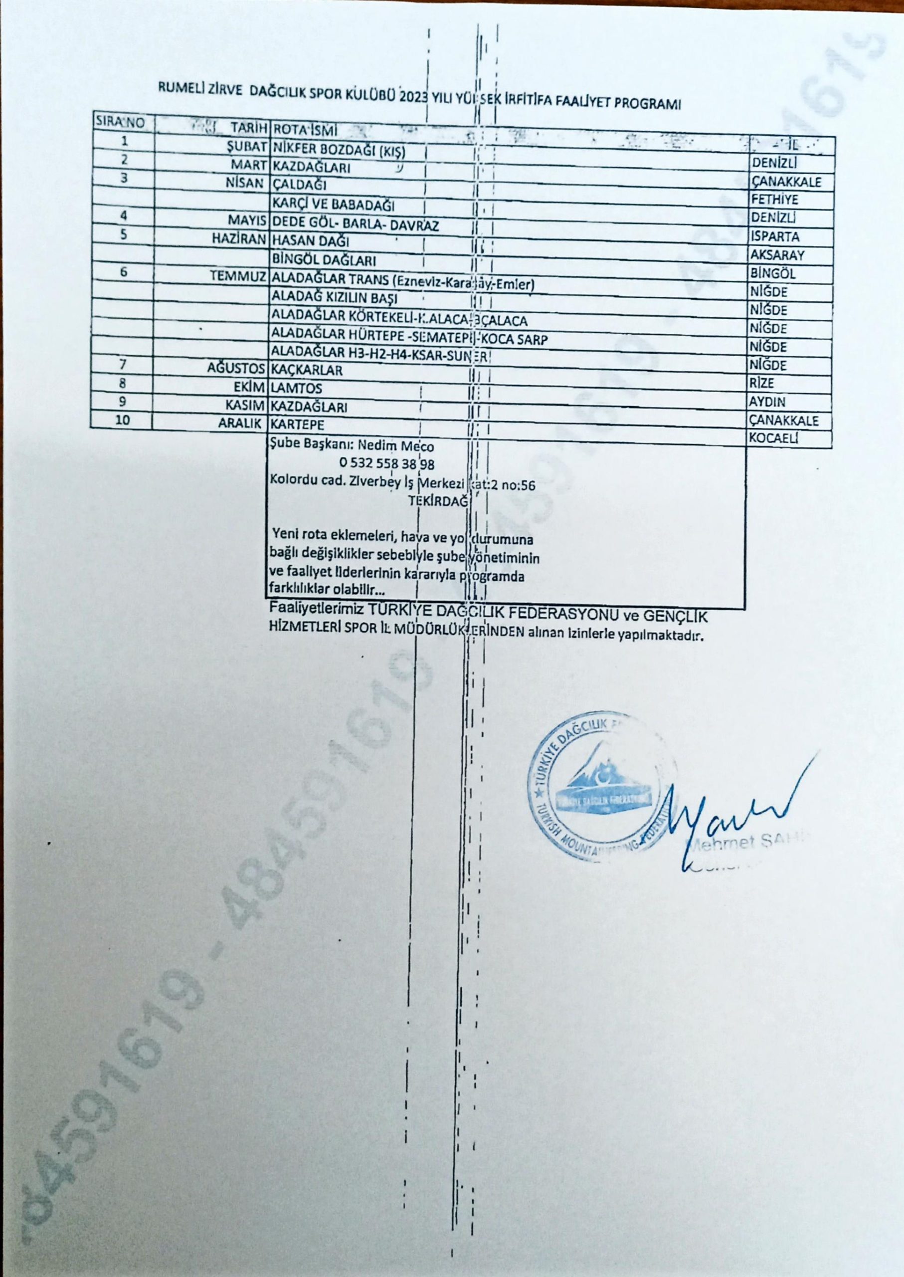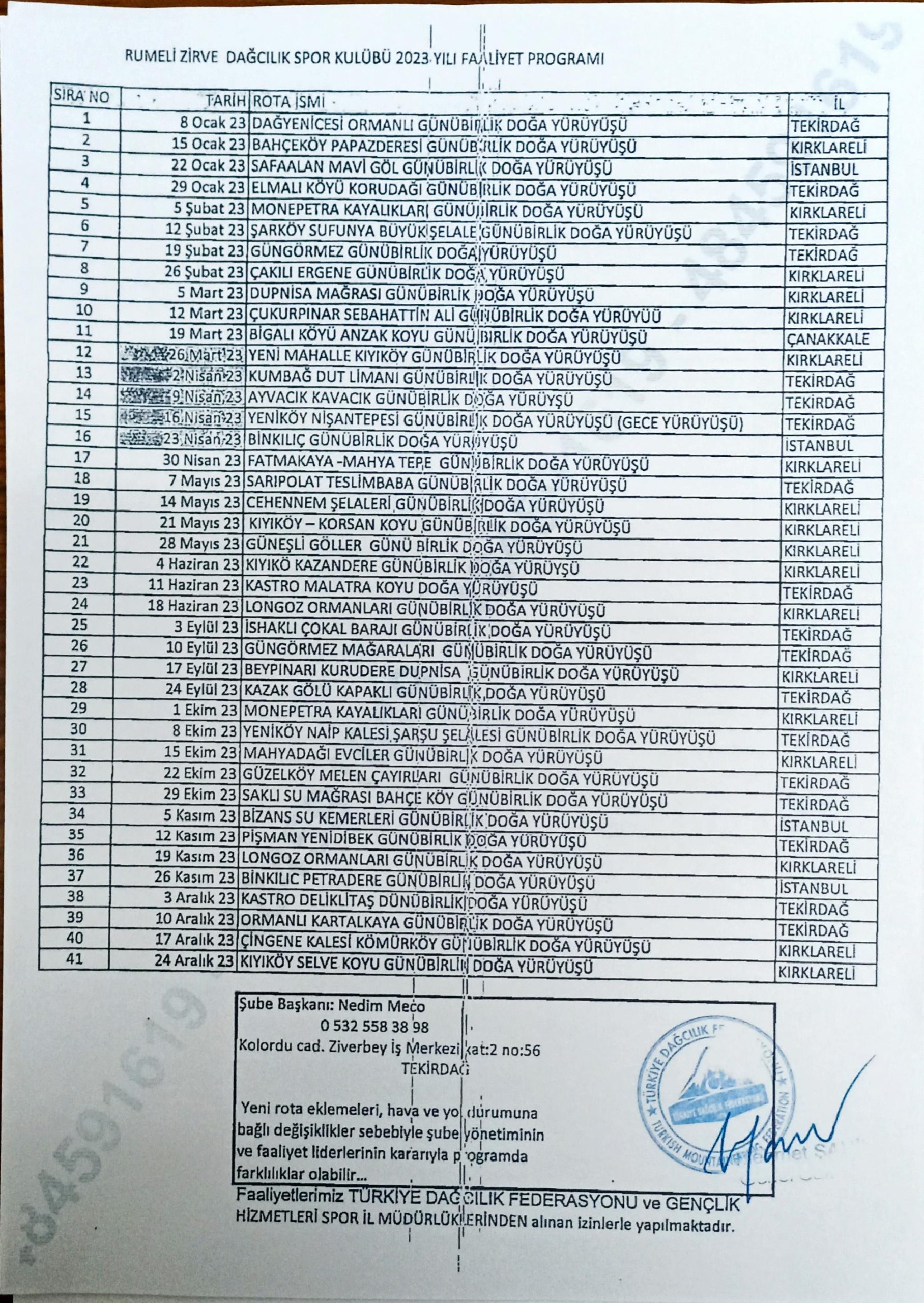Rumeli Zirve Dağcılık 2023 yılı doğa yürüyüşü ve dağcılık faaliyet programı. 5 Nisan 2023 admin Dağ ve Tırmanış Programları, Dağcılık Faaliyetleri 0